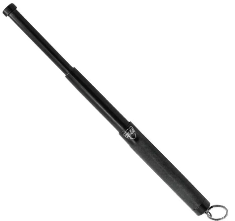 This 12-inch Expandable Baton with Key Ring is a compact self-defense tool designed for convenient everyday carry. The integrated key ring allows the baton to be easily attached to keys or gear, providing quick access while on the move.